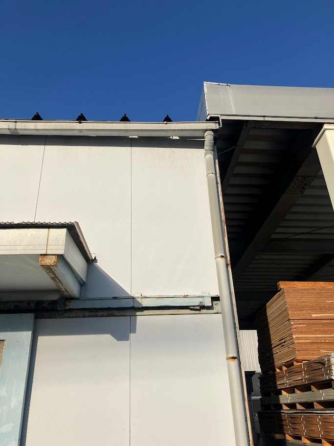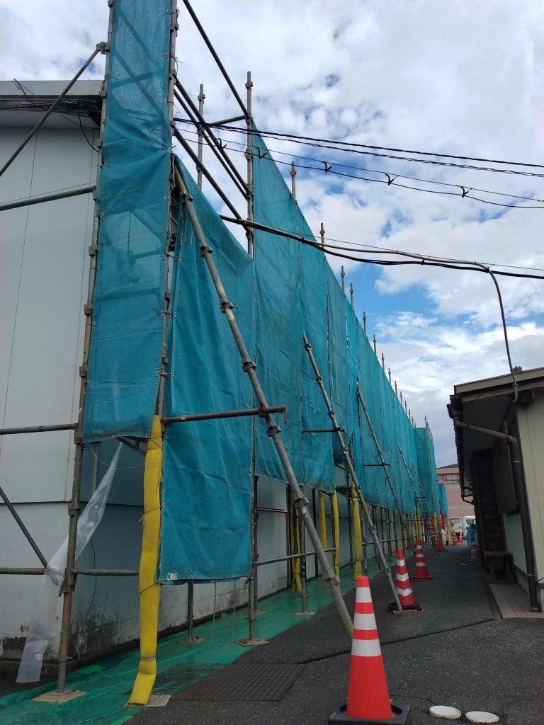 ただいま、久大建材本社の倉庫外壁を修繕中です。